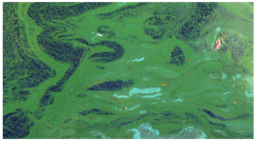 En premier lieu, le danger d’intoxication potentielle peut être visuellement apparent. En effet, un bloom de cyanobactéries peut donner une couleur verte très prononcée à l’eau, ce qui ne donne pas envie de se baigner. Par contre, les cyanobactéries ne sont pas nécessairement toutes toxiques.
